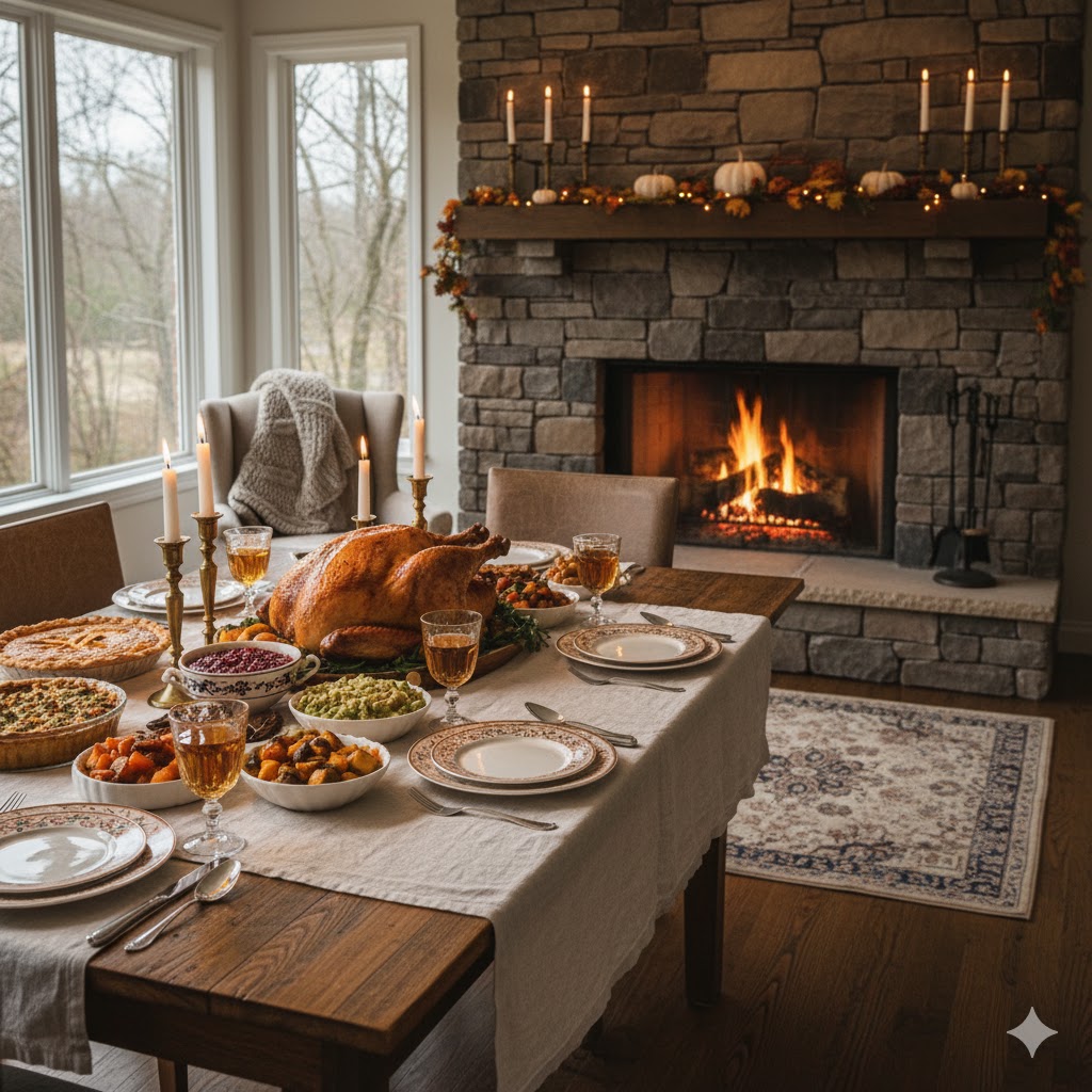 Your dining table is the centerpiece of Thanksgiving. Use a runner or simple centerpiece, polish your glassware, and set out plates ahead of time. If you’re limited on space, consider a buffet-style setup to make serving easier.