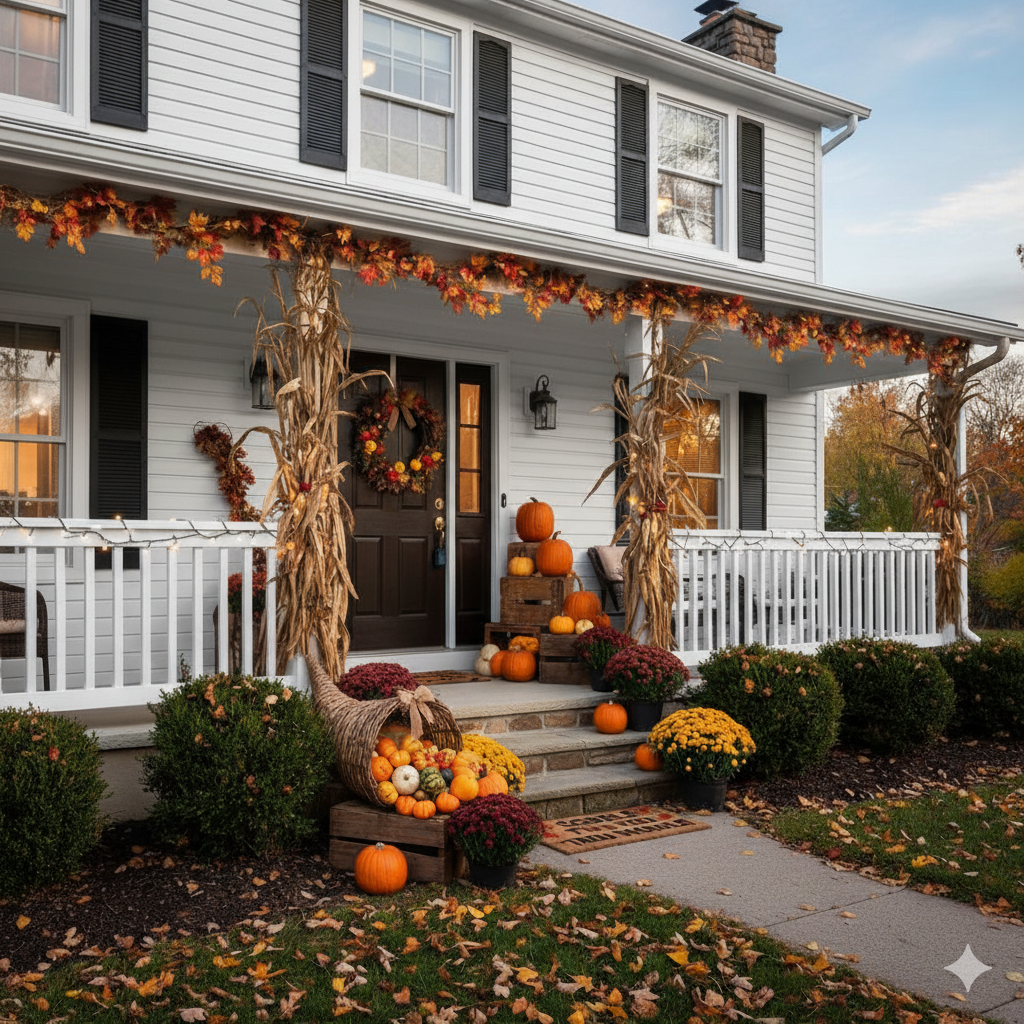 Rake leaves, tidy walkways, and add a cheerful wreath or fall planter near the front door. Good first impressions start at the curb — just like in real estate!